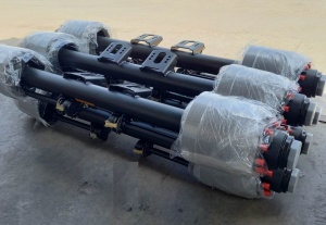 В комплект на трехосный прицеп входит: 6 опор, 6 амортизаторов, 6 рессор, две подушки для подъема оси с механизмом, стремянки, накладки/подкладки, болты/гайки, пластины, 6 пневмобаллонов больших и краны,фитинги для монтажа.